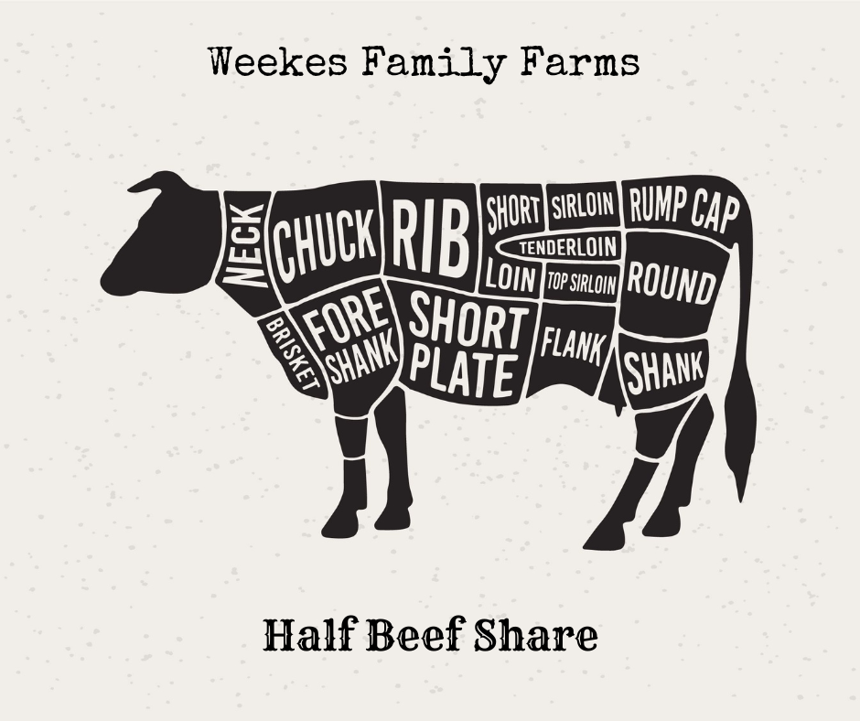 The half beef share is perfect for a family for half a year or to share with a friend! A half beef share requires 6-8 cubic feet of freezer space.